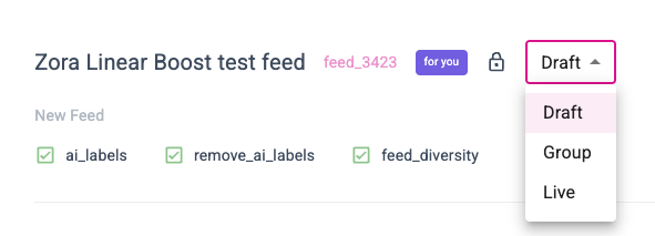 Our warmup cycles take place every 3 hours, meaning that a feed brought from Draft to Group or Live will be ready for deployment in t+3hours. This is the necessary time so that all of the user's feeds are ready to be served according to high performance standards.